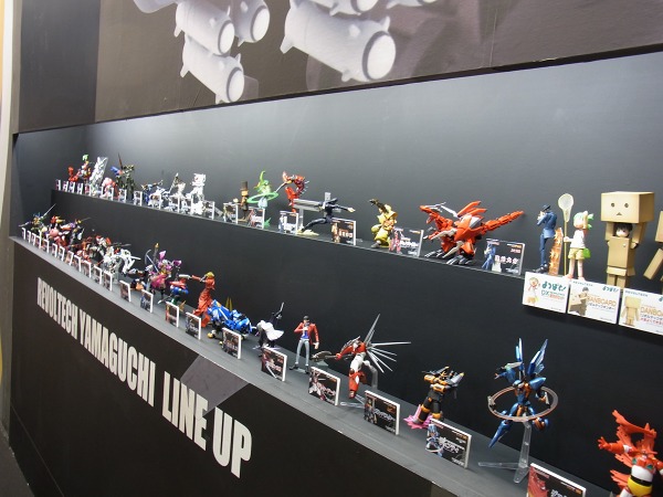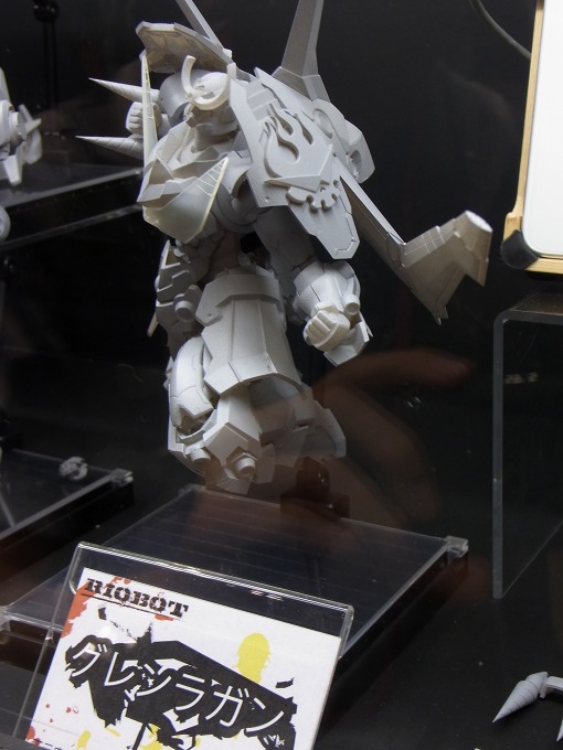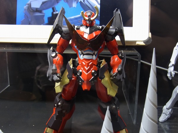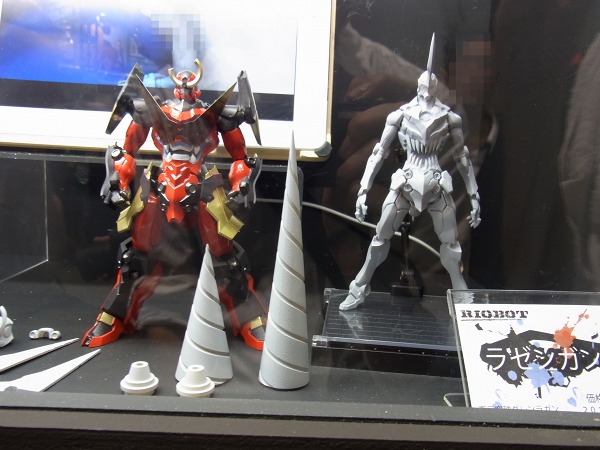 千値練関係とリボルテックヤマグチ関係。いよいよ千値練グレンラガンが彩色原型まで来ててテンション上がった。こいつはいくら高くても買わざるを得まい…!紹介ムービーが流れていましたがなんか異様に膝が曲がってたのが印象的でした。横にはこれまた尖りに尖った造形のラゼンガンが。やばい。